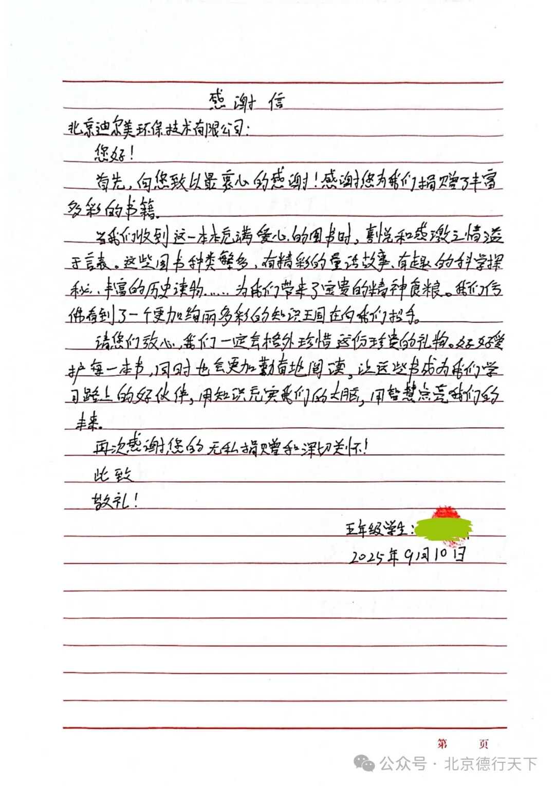 我们诚挚感谢北京迪尔美环保技术有限公司,同时也呼吁更多爱心人士加入这场温暖行动。无论是捐赠一本书,还是分享一份力量,您的小小善举都可能成为孩子人生路上的明灯。