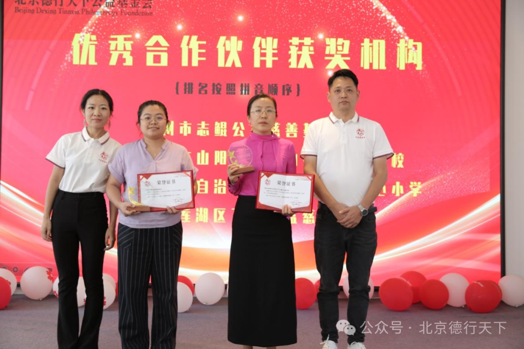 优秀合作伙伴:西安市莲湖区飞鸣公益慈善中心、广州市志鲲公益慈善基金会、四川省甘孜藏族自治州德格县麦宿镇中心小学、陕西省商洛市山阳县天竺山镇九年制学校