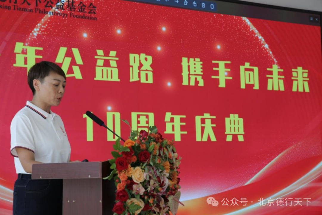 会上,裴蕾回顾了十年风雨坚韧、成绩辉煌的历程,她说,从 2015 年 9 月16日基金会成立,2016 年 12 月,基金会成功被认定为 “慈善组织”, 2020 年 1 月,被评为 “3A 级社会组织”。党和国家对我们工作的支持、认可和褒奖,让我们的公益之路上更有信心、更有底气、更有干劲!