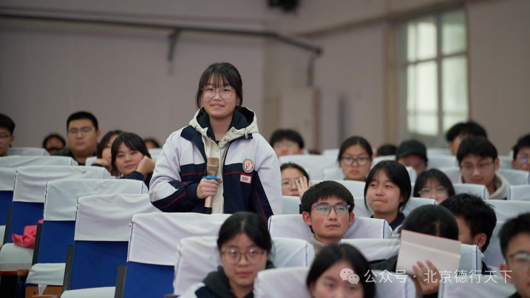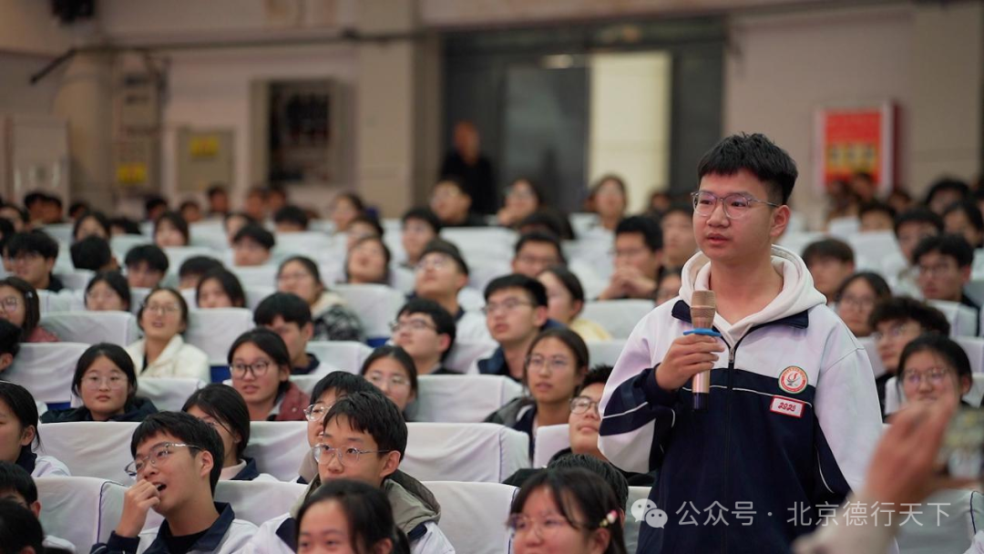 自由问答环节将活动气氛推向高潮。一中学子们踊跃举手,争相提问。他们的问题涵盖学习时间分配、学习心态调整、成绩提升策略以及高效背诵方法等多个方面。每一个问题都饱含着对青春的思考和对未来的憧憬,展现出他们积极进取的学习态度。
