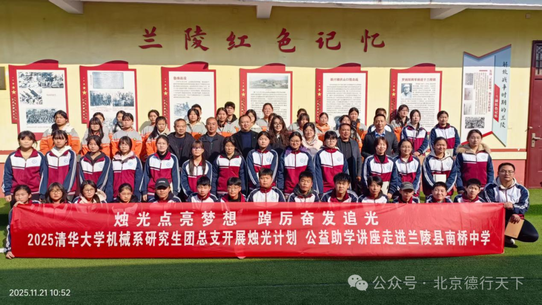 11月20日至21日,由兰陵县利他社会工作服务中心联合北京德行天下公益基金会、唯爱公益、共青团清华大学机械工作系委员会共同举办的“小兰劝学·希望兰陵”第三期公益讲座,在山东省兰陵县第一中学和南桥镇初级中学顺利开展。本次活动以“烛光点亮梦想 踔厉奋发追光”为主题,旨在帮助学生树立自信、明确目标,激发持续学习的动力,并为学子们传授实用学习方法,解答学业困惑。