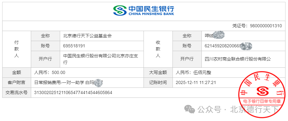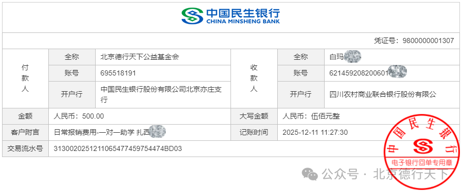 爱心不分大小,行动彰显担当。北京德行天下公益基金会“一对一助学”项目仍在持续招募爱心力量,若您也想为雪域学子添一份温暖,可关注基金会官方渠道了解捐赠详情,让我们携手让爱跨越山海,让每个梦想都有绽放的机会。