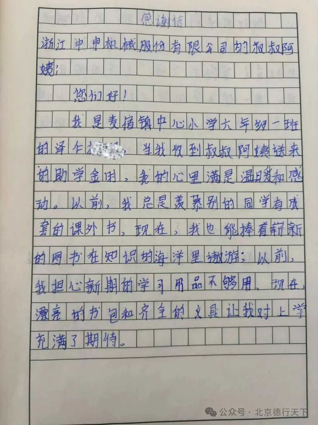 “企业的价值不仅在于创造经济效益,更在于为社会传递温暖与希望。”中申机械负责人在和项目负责人聊天中说到。作为深耕机械制造领域的浙江企业,中申机械始终秉持“精工筑业,大爱筑心”的理念,在追求技术创新与品质提升的同时,从未忘记社会责任。此次通过北京德行天下公益基金会的专业对接,将善款精准转化为4名学生的学费、伙食费及过冬物资费用,让每一分爱心都落到实处。