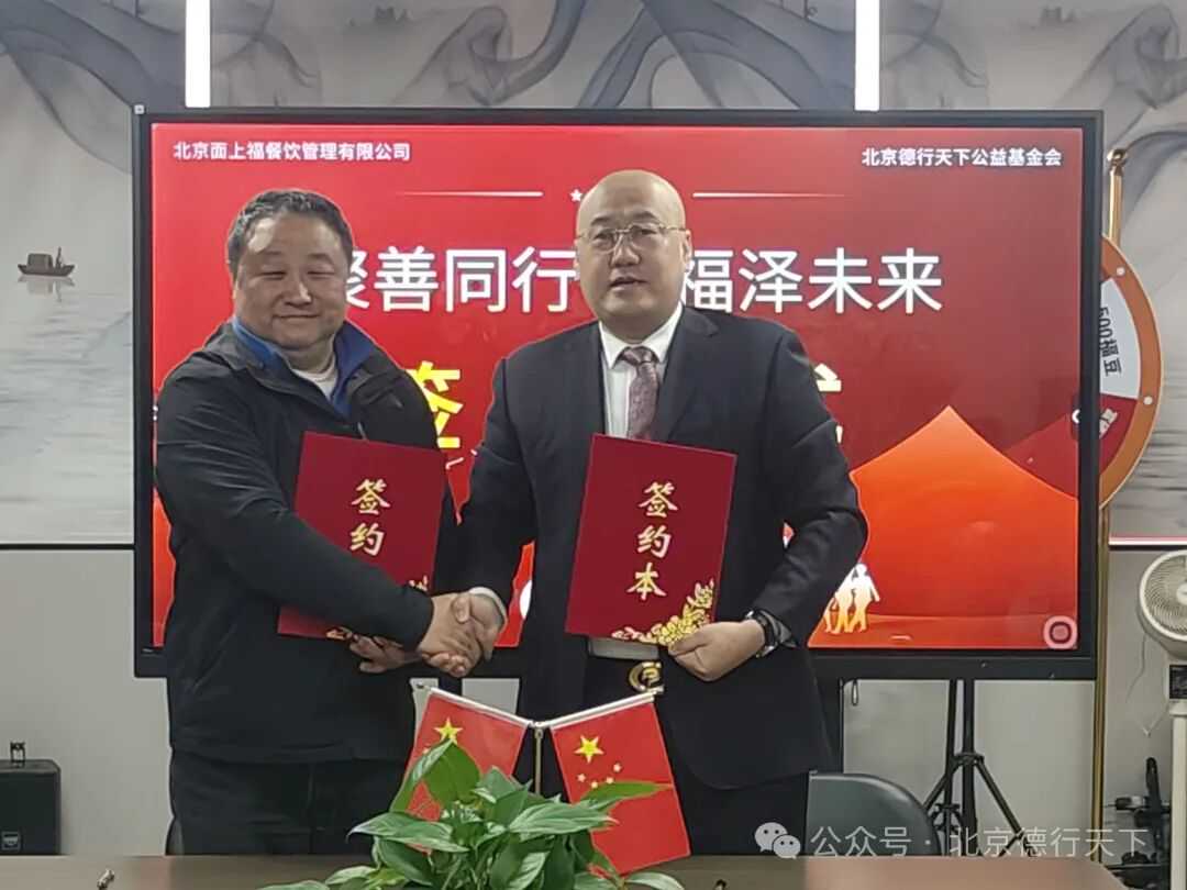 2026年1月12日,北京德行天下公益基金会与北京面上福餐饮管理有限公司签署战略合作协议,成为公益路上的温暖同行者。这次合作不仅是双方在公益事业上的深度携手,更是“餐饮+公益”模式在社区场景中的一次创新实践,旨在将善意融入生活,让公益触手可及。