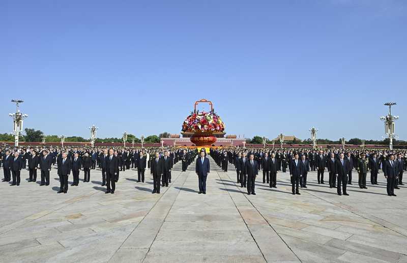 新华社北京9月30日电 铭记英烈功勋,砥砺奋斗精神。烈士纪念日向人民英雄敬献花篮仪式30日上午在北京天安门广场隆重举行。党和国家领导人习近平、李强、赵乐际、王沪宁、蔡奇、丁薛祥、李希、韩正等,同各界代表一起出席仪式。