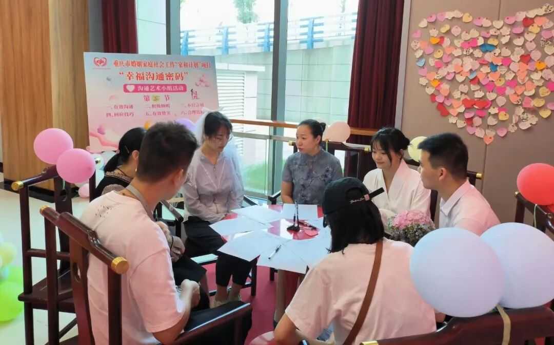 ▲重庆市实施婚姻家庭社会工作“家和计划”项目,创新婚姻家庭辅导服务模式。图为“幸福沟通密码”沟通艺术小组活动现场,社工为新婚夫妻教授沟通技巧。(供图/贺添)