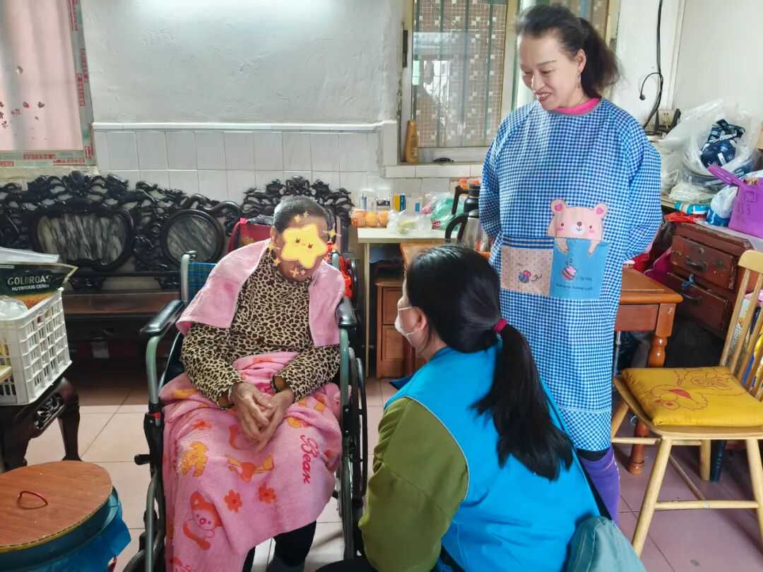 ▲广州市白云区鹤龙街社工站社工日常入户探访失能老人,关注其身心健康。(供图/周丽娥)