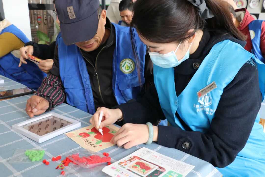 ▲浙江省永康市东城街道民政服务站社工在永康市经济开发区携手残疾人之家开展“悦己同心,助残同行”残障人士情绪管理支持小组活动,助力参与者舒缓压力、表达情绪、建立互助关系。图为活动中社工协助残障人士制作毛球画。(供图/楼锦芳)